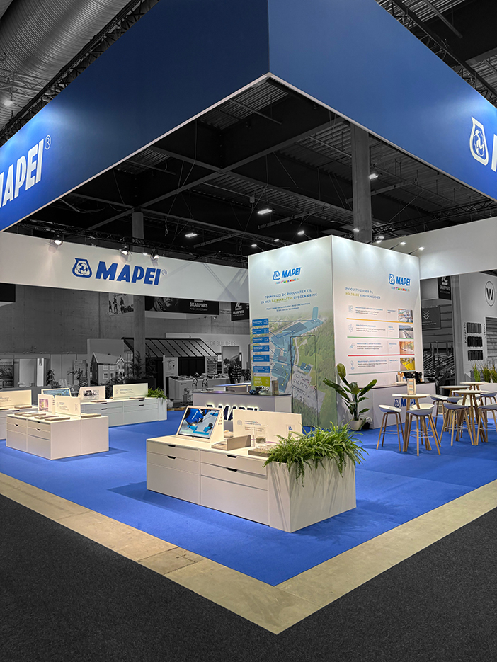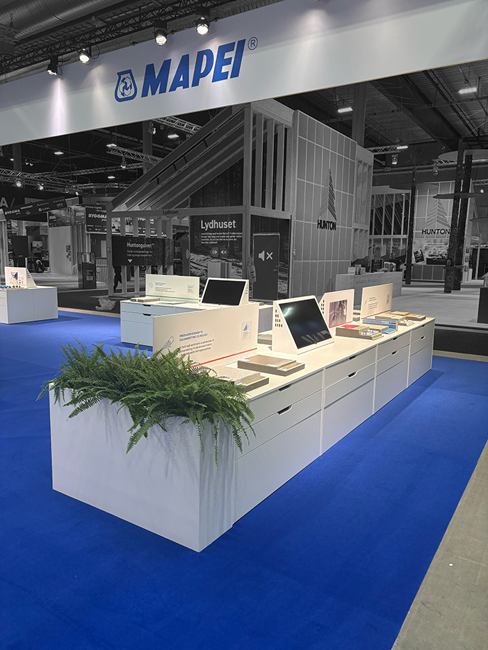 Helheten ble en stand som kombinerte industriell presisjon med håndverksmessig kvalitet – en profesjonell arena hvor Mapei kunne møte kunder, vise frem nyheter og skape gode faglige samtaler gjennom hele messen.